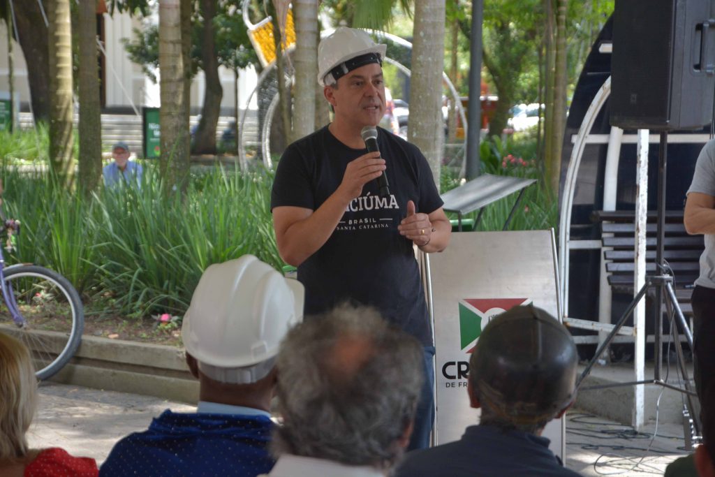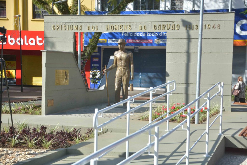 A entrega da revitalização do Monumento ao Mineiro, na Praça Nereu Ramos, no Centro, oficializou a valorização de um dos símbolos mais importantes da cultura criciumense. O ato organizado pelo Governo de Criciúma, por meio da Fundação Cultural (FCC), aconteceu nesta quinta-feira (27). A iniciativa contou com o apoio do Sindicato dos Mineiros na Extração do Carvão, Pedras e Areias de Santa Catarina (Sindmineiros), que adotou o monumento, do Sindicato da Indústria de Extração de Carvão do Estado de Santa Catarina (Siecesc-Carvão+), da Ferrovia Tereza Cristina (FTC) e da Associação Beneficente da Indústria Carbonífera de Santa Catarina (Satc).