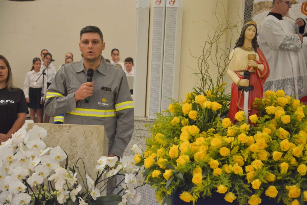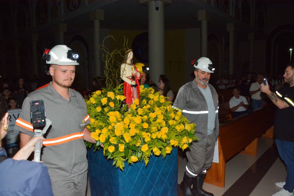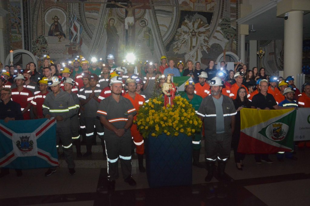 Um dos momentos mais marcantes da celebração foi a entrada dos mineiros com as luzes apagadas, iluminando o ambiente apenas com as lanternas de seus capacetes, enquanto conduziam a imagem de Santa Bárbara, padroeira dos mineiros. Em seguida, foi realizada a bênção a todos os profissionais das carboníferas do Sul catarinense. Participaram da missa representantes das Carboníferas Belluno, Catarinense, Gabriella, Metropolitana e Rio Deserto, além de alunos e profissionais da SATC.