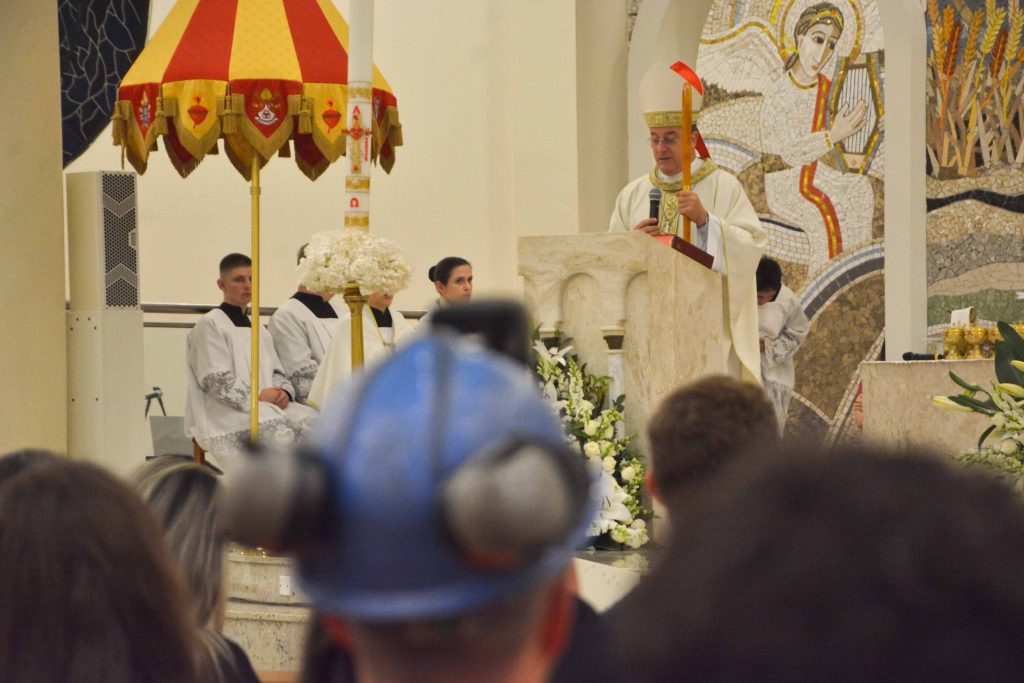 Os mineiros e profissionais do Setor Carbonífero, fundamentais para o desenvolvimento do Sul catarinense, foram homenageados com uma missa especial na Basílica Santuário Sagrado Coração Misericordioso de Jesus, em Içara. A Solene Celebração Eucarística, realizada na noite desta sexta-feira (10), reuniu centenas de participantes e integrou a programação da 9ª Festa da Misericórdia.